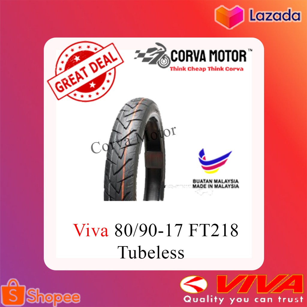 Tayar Viva Tubeless Tyre Ft218 Tayar Motosikal Tubeless 70 90 17 80 90 17 Corsa R26 Shopee Malaysia